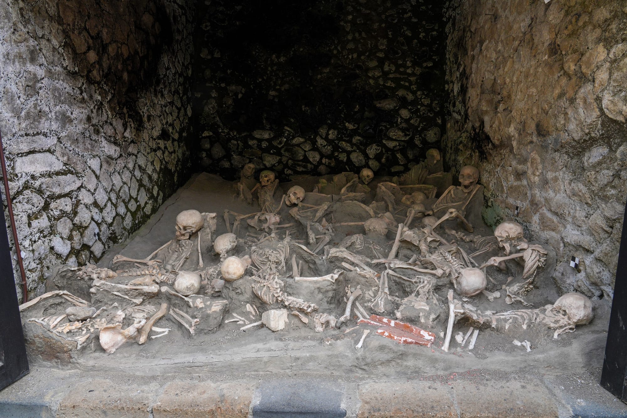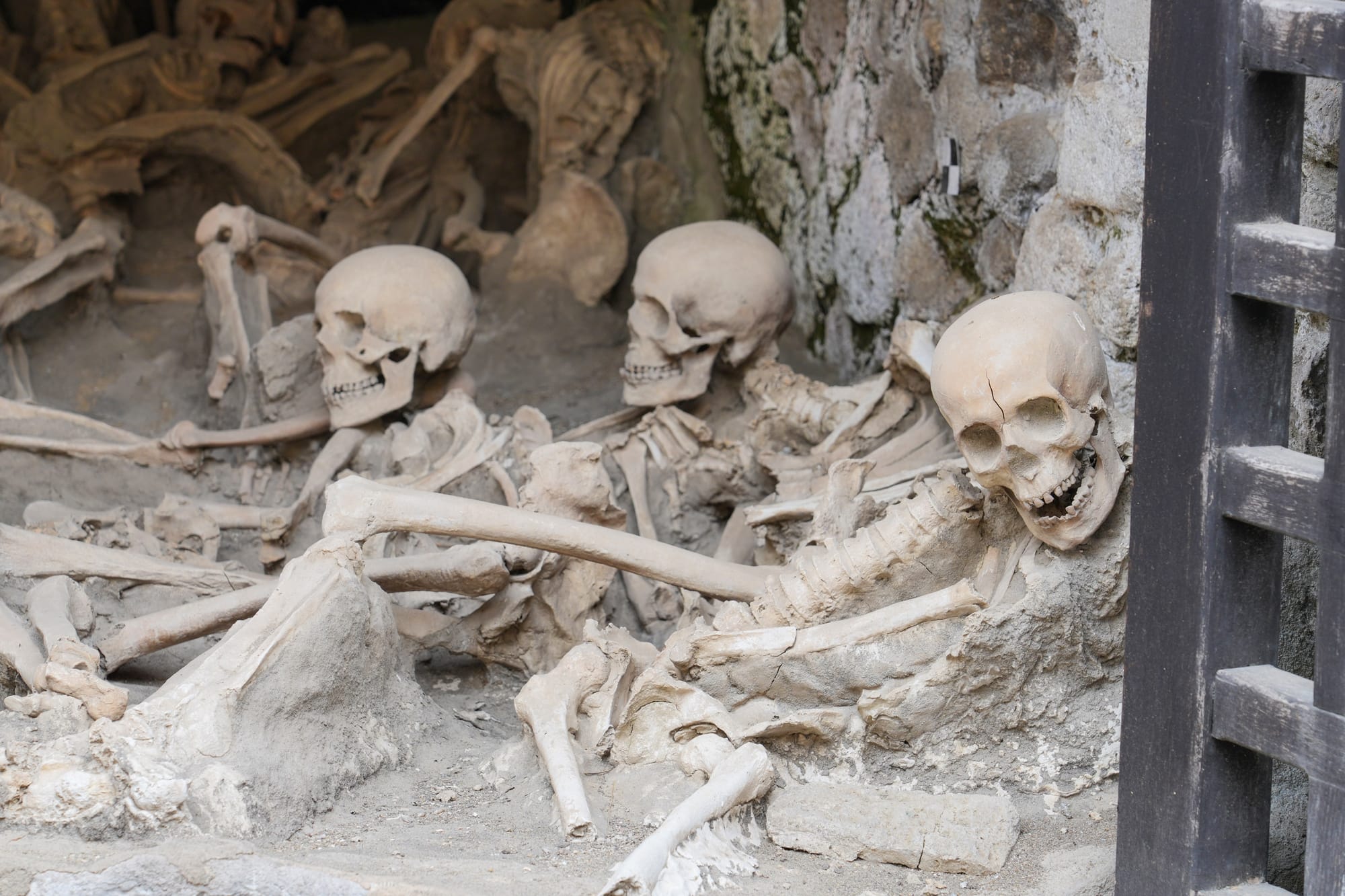 During the catastrophic night of the eruption, over 300 people and animals, including mules and horses, perished on the beach. The first pyroclastic surge, with temperatures over 400°C and speeds of 80 km/h, caused instantaneous death. Subsequent volcanic mudflows buried their remains. These skeletons provide invaluable insights into the diet and health of Herculaneum's ancient inhabitants. They carried valuable items like coins, jewelry, lamps, and house keys, suggesting they had time to close their homes before fleeing.