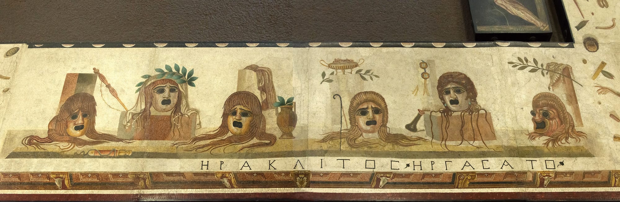 - The Dionysian masks visually connect the theme of banqueting with the metaphor of life as a theatrical performance, a concept explored by Lucian and Aristophanes.
