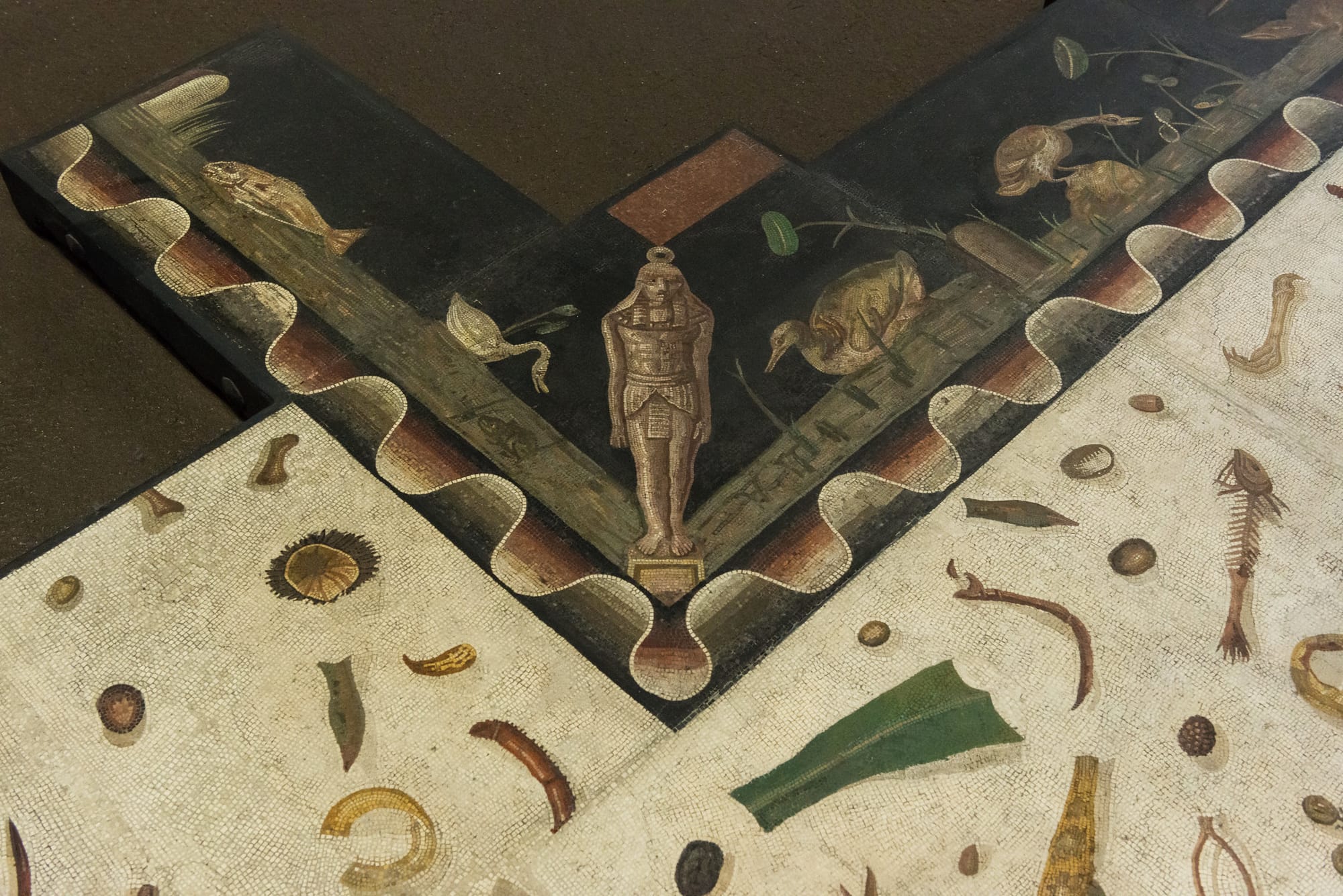Given their subject matter—depicting food scraps strewn across a dining room floor—it is highly plausible that these mosaics adorned the triclinium, the Roman banquet hall. Their imagery directly referenced the Roman custom of discarding meal remnants onto the floor during feasts.