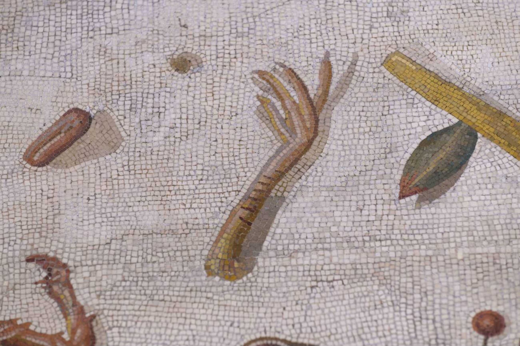 Detail with a chicken leg from the asarotos oikos mosaic. Credits: Dmitriy Moroz, Alamy