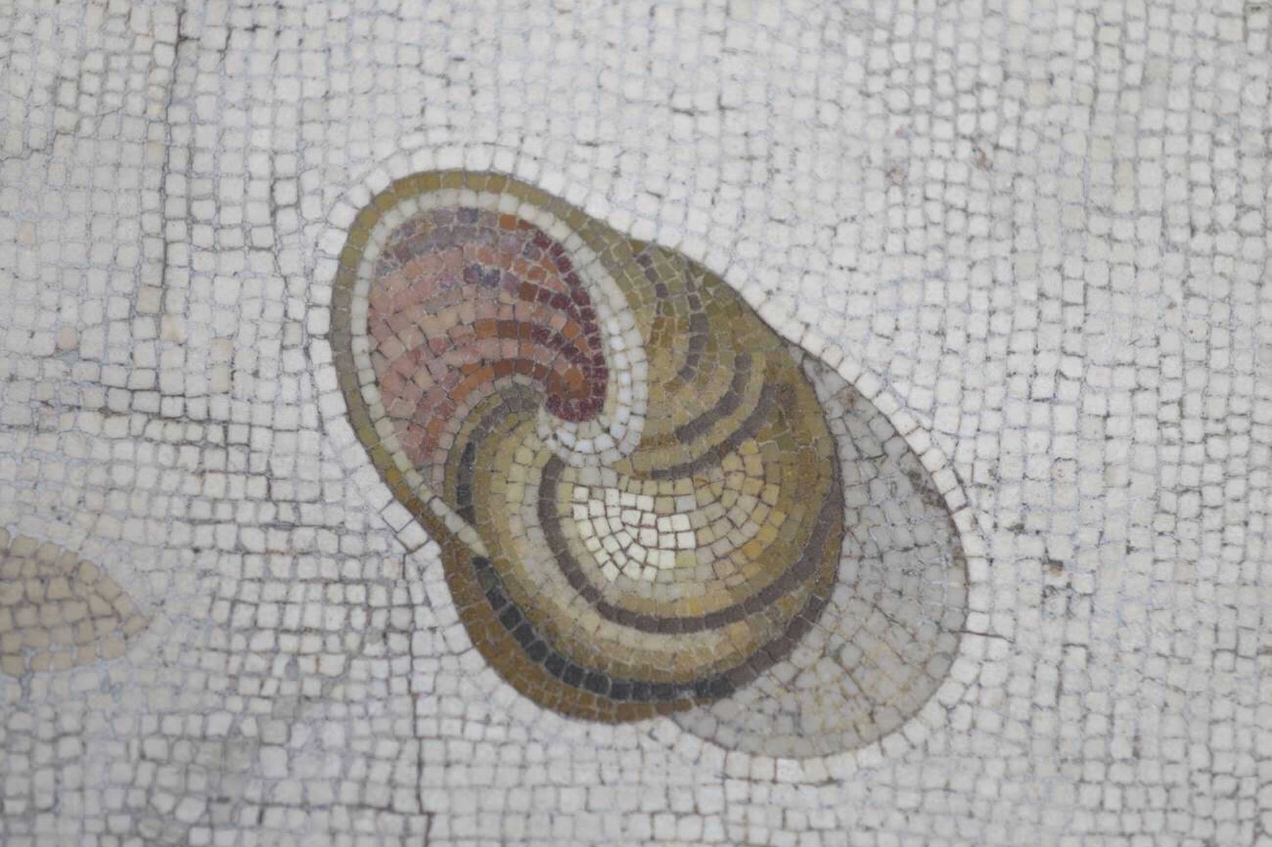 Detail with a sea shell from the asarotos oikos mosaic. Credits: Dmitriy Moroz, Alamy