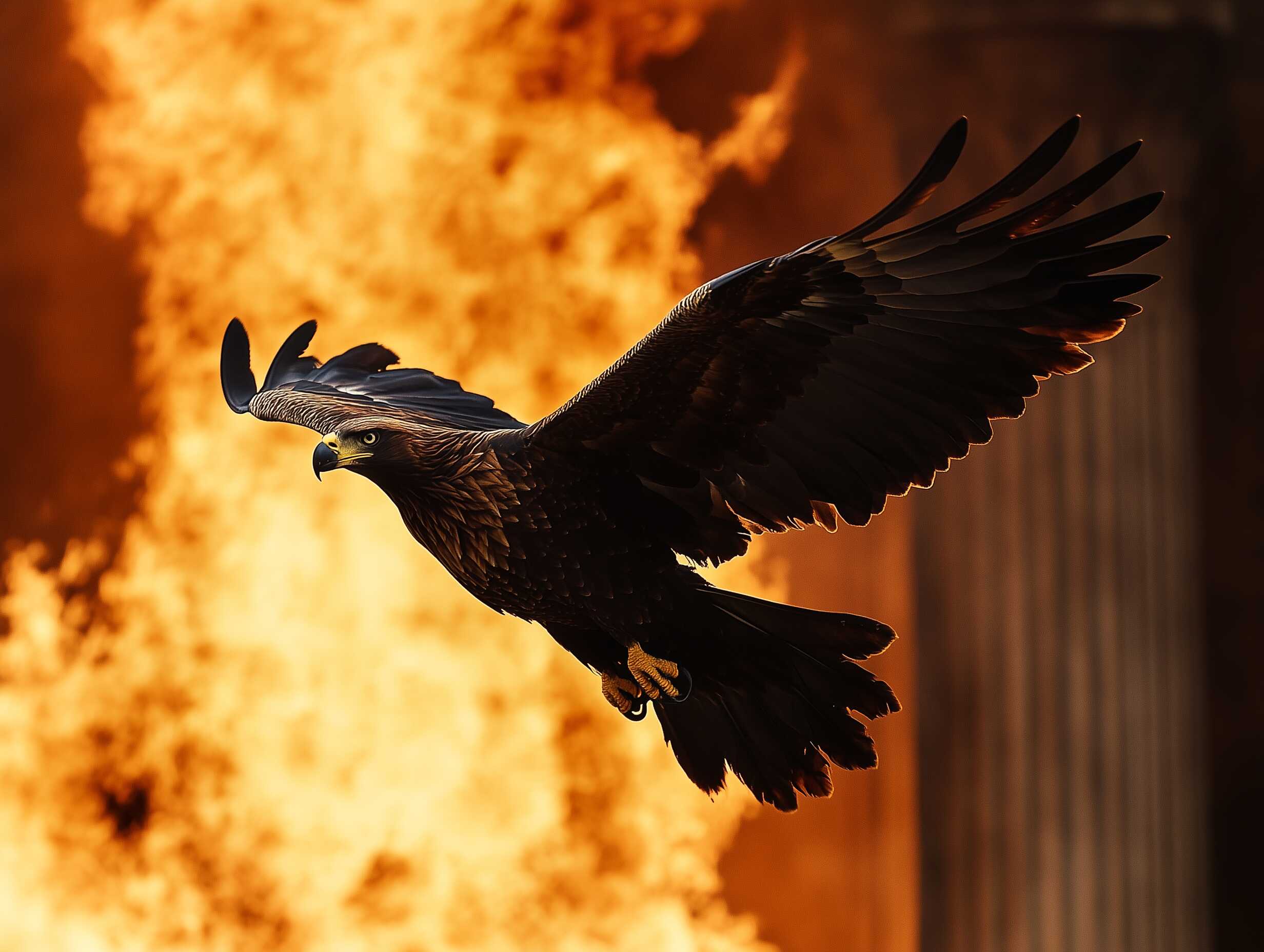 A possible representation of an eagle being released from the pyre of a Roman Emperor during his apotheosis ritual. Illustration: Midjourney