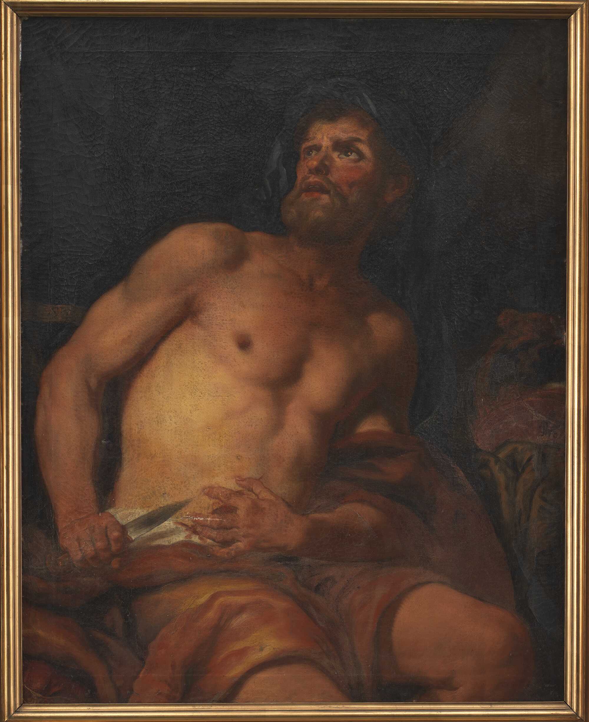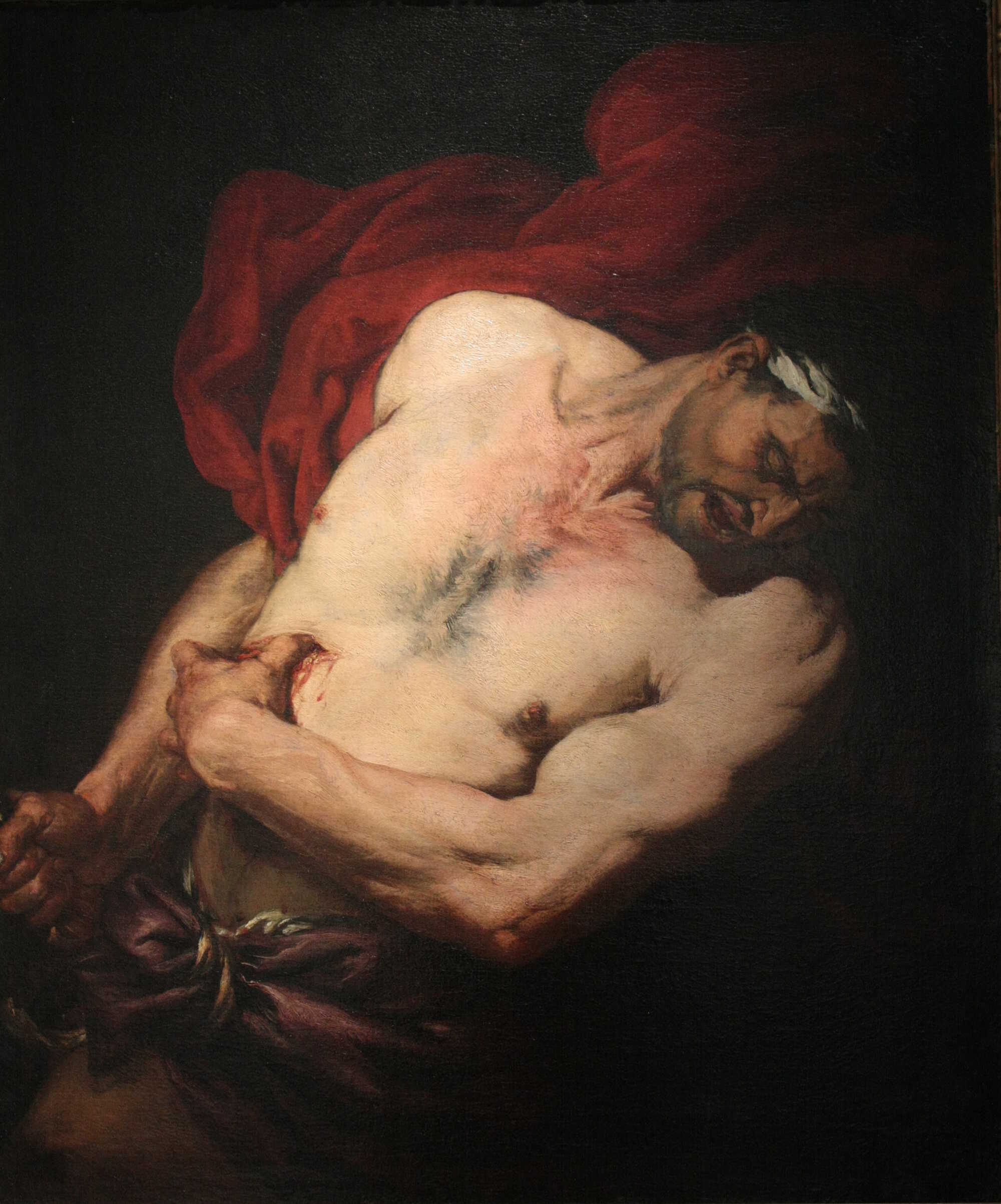 “…Cato drew his sword from its sheath and stabbed himself below the breast.