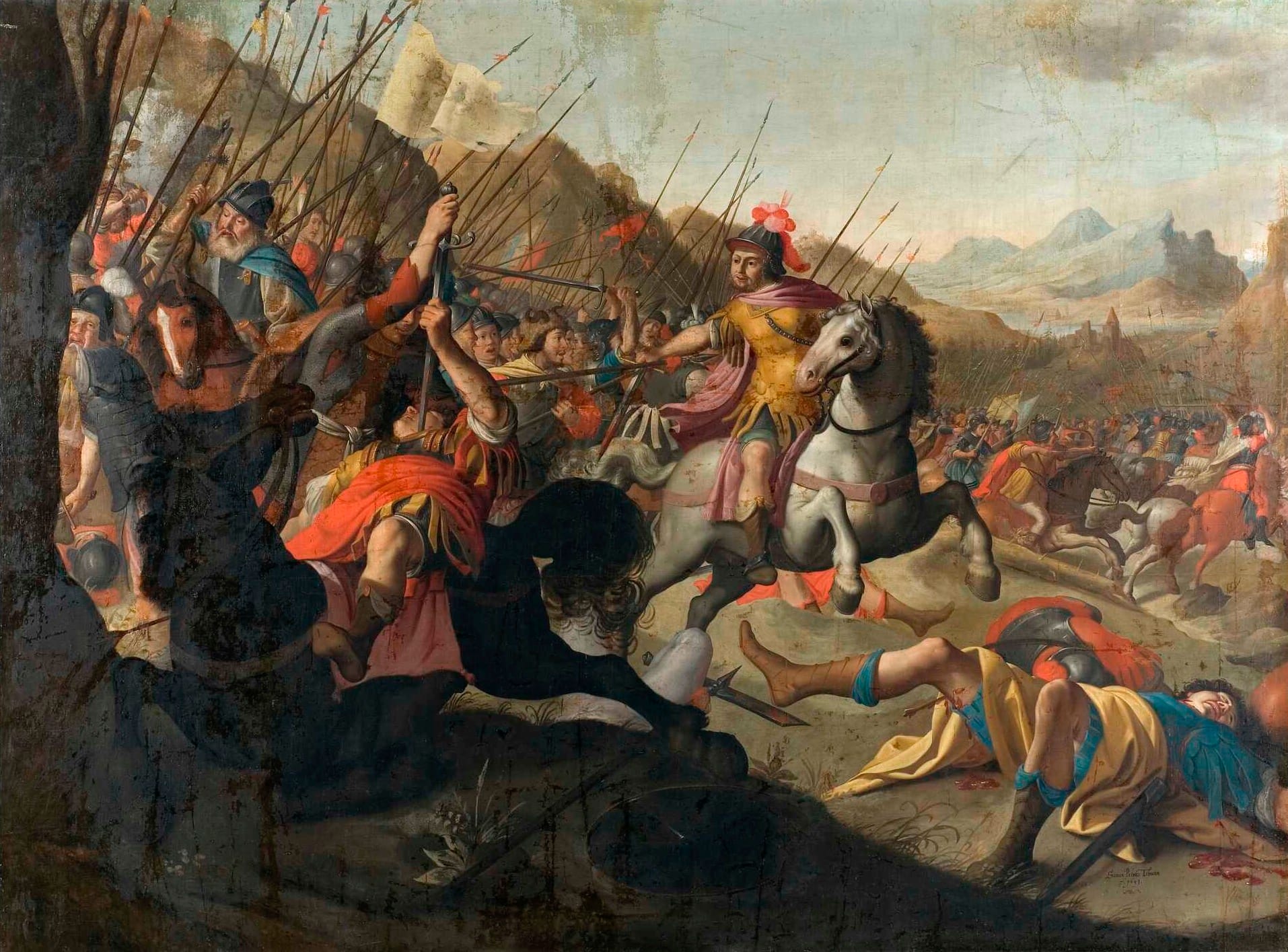 A Roman Battle, a painting by Simon Peter Tilemann. Public domain