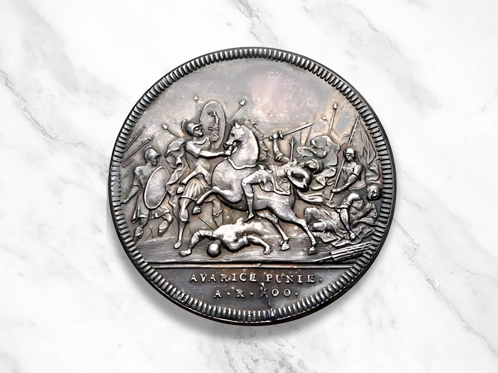 A Swiss medal depicting the death of Crassus' son Publius at the hands of the Parthians. Credits: Mesamong from Getty Images by Canva, LouisAragon CC BY-SA 2.5, Composition by Roman Empire times