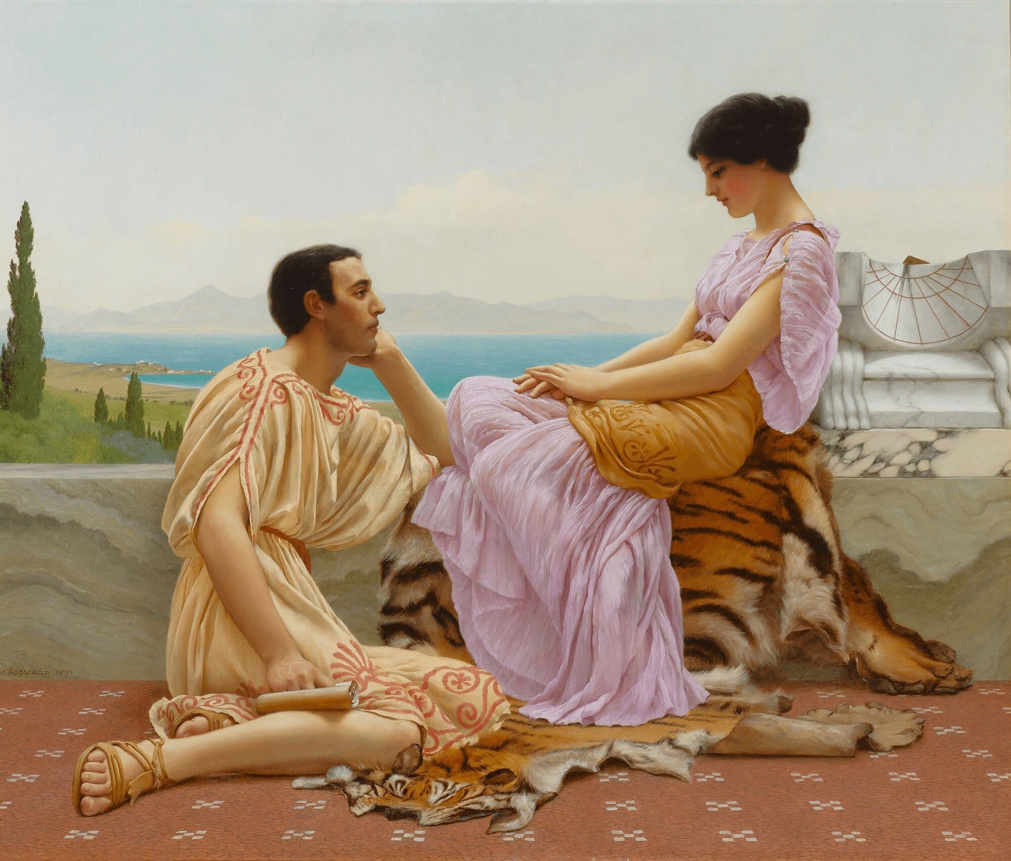 Youth and Time (sundial on the right), a painting by John William Godward. Public domain
