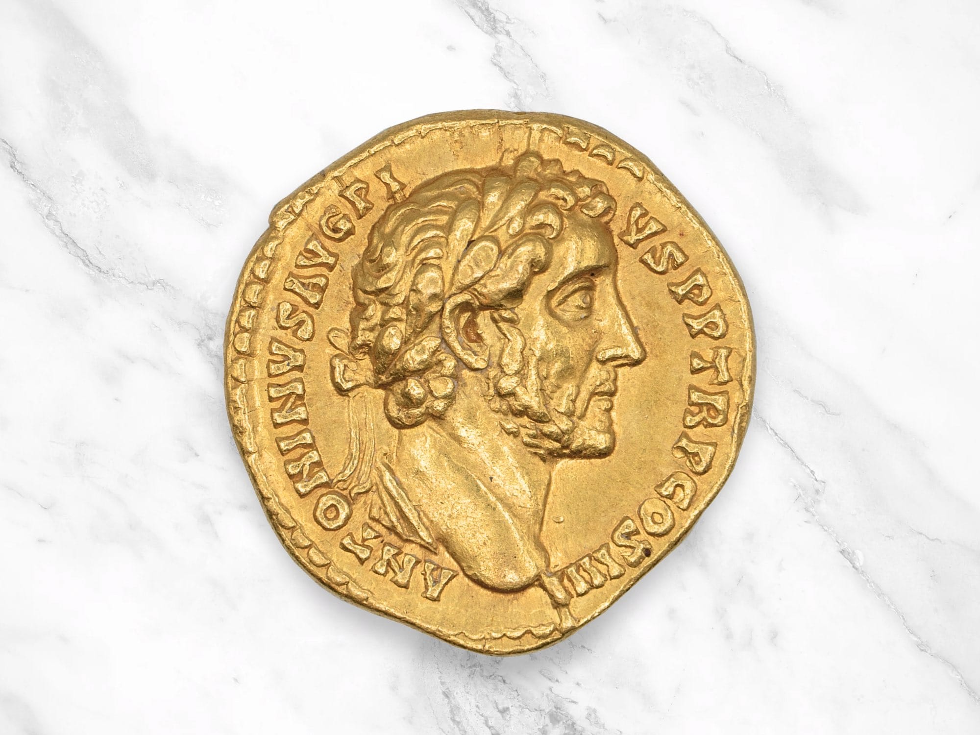 Image #1: Roman Aureus Gold Coin depicting co-Emperor Lucius Verus, notice the absence of the Filius Augustus (AUG) on the top left. Image #2: Roman Aureus Gold Coin depicting Emperor Antoninus Pius, with the Filius Augustus (AUGFI) on the top left Credits: Roman Empire Times, Marina Fischer, CC BY-NC 2.0
