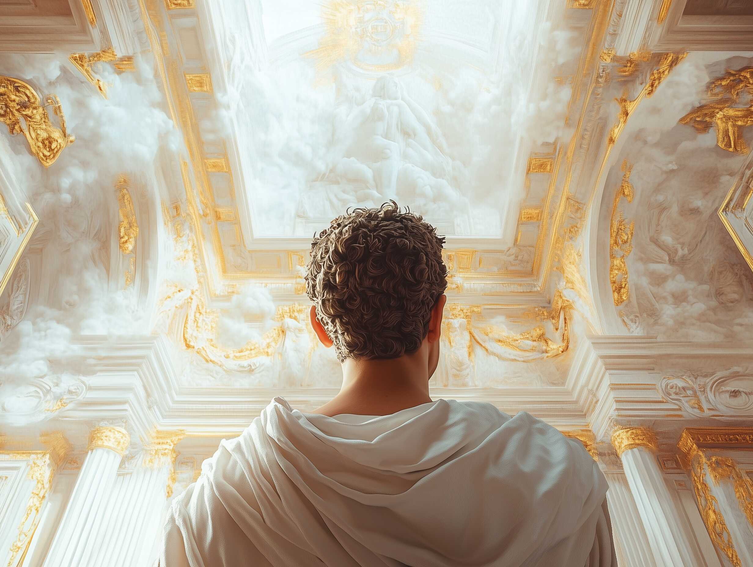 A depiction of how some Romans viewed their monarch as a God Emperor. Illustration: Midjourney