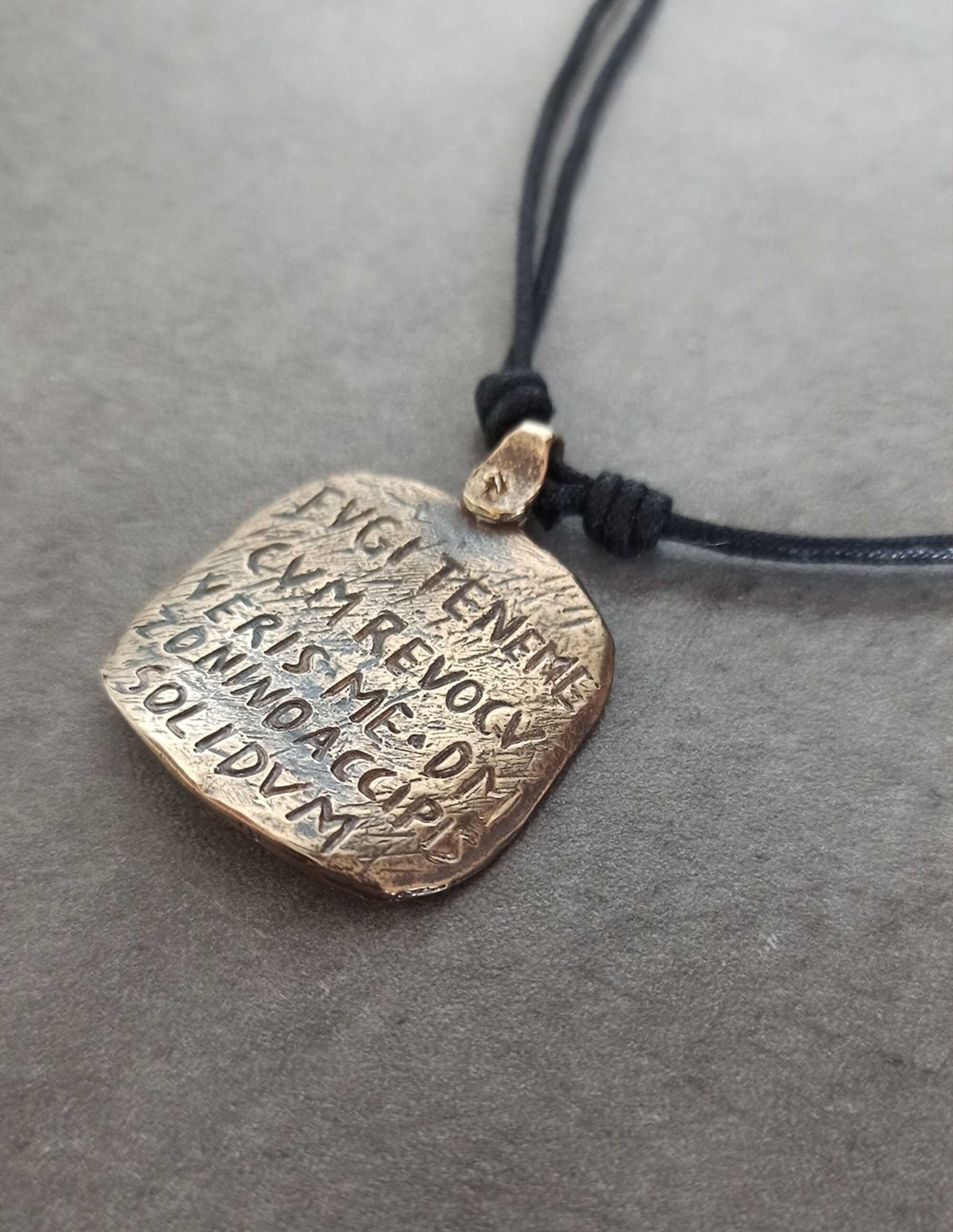 That purpose becomes clearer through the language of the inscription. The Zoninus collar begins with fugi, tene me—“I have run away, hold me.” Many similar collars use nearly identical phrases: tene me ne fugiam (“hold me so I do not run”) or tene me quia fugi (“hold me because I have run”).
