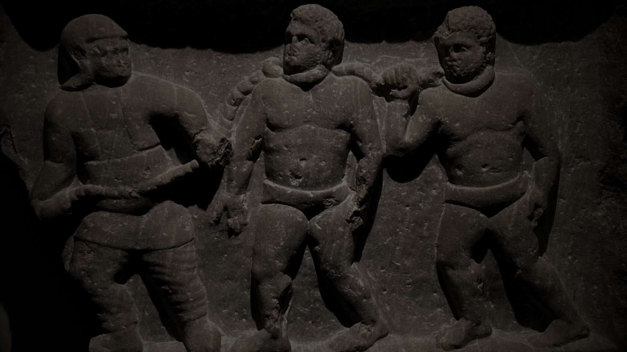 Detail from a marble relief found in Smyrna, showing collared slaves. Credits: D Smith, CC BY-SA 2.0