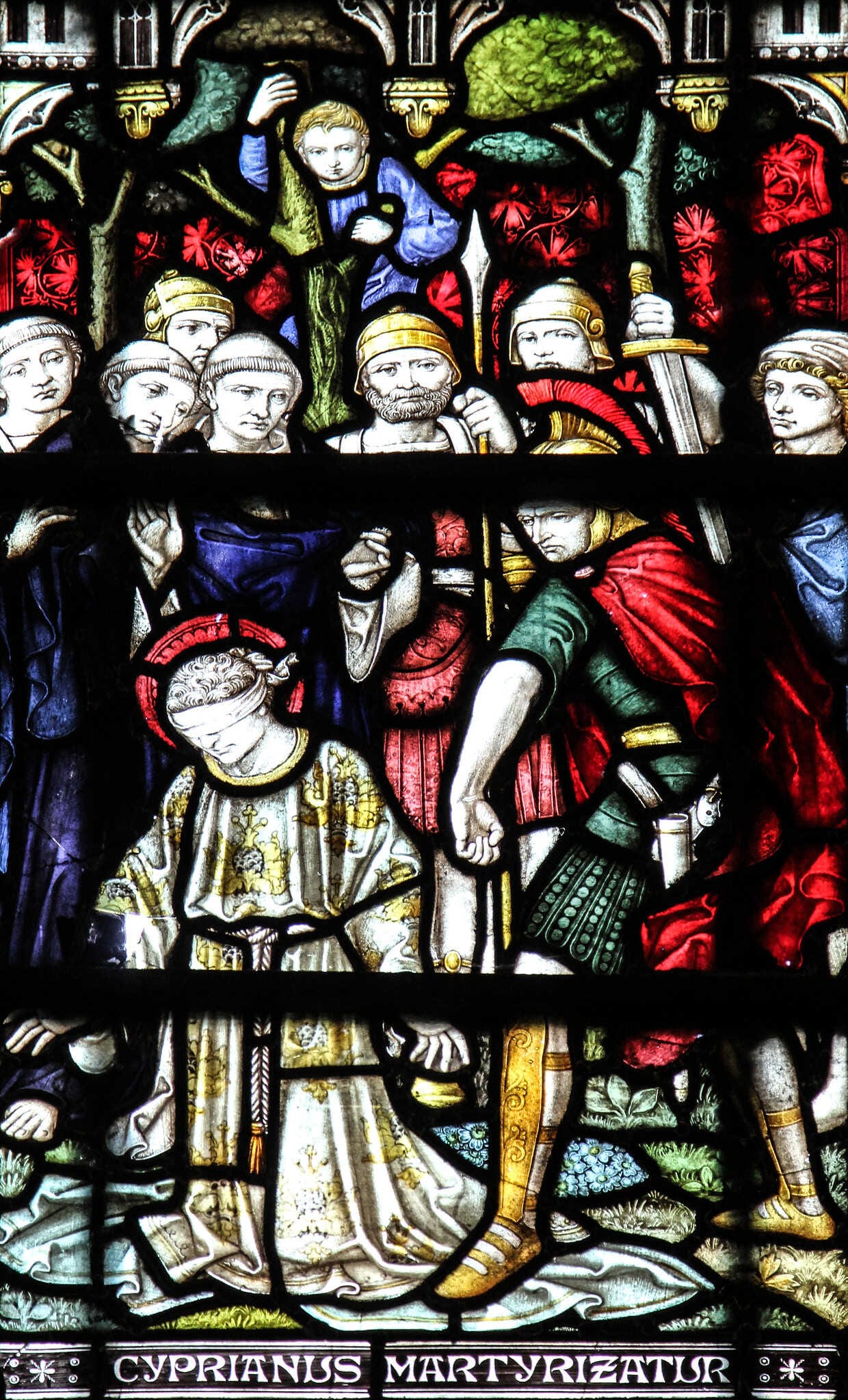 Image #1: Page from an Imperial Menologion, depicting a saint being beheaded here (Polyeuctus), a Roman army officer martyred at Melitene (Asia Minor) under Emperor Valerian in 259. Credits: Walters Art Museum Illuminated Manuscripts, Public domain. Image #2: The martyrdom of Saint Cyprian, who was executed under Emperor Valerian. Credits: Lawrence OP, CC BY-NC-ND 2.0