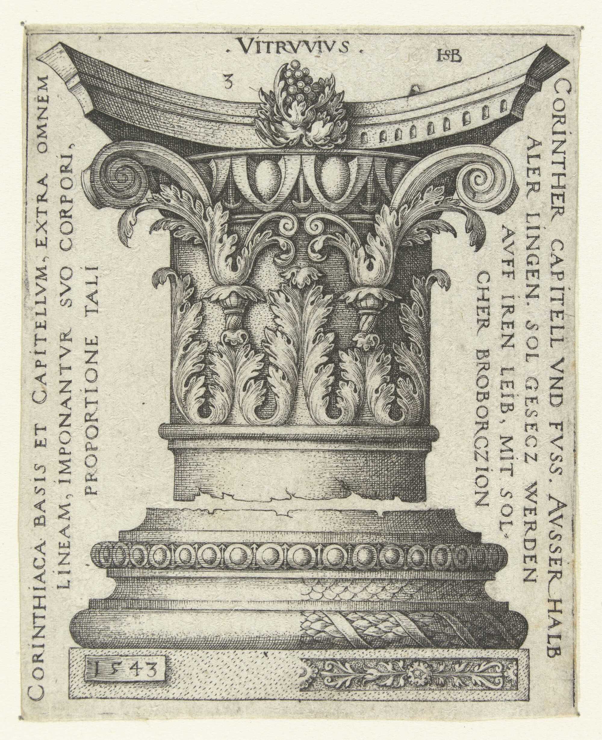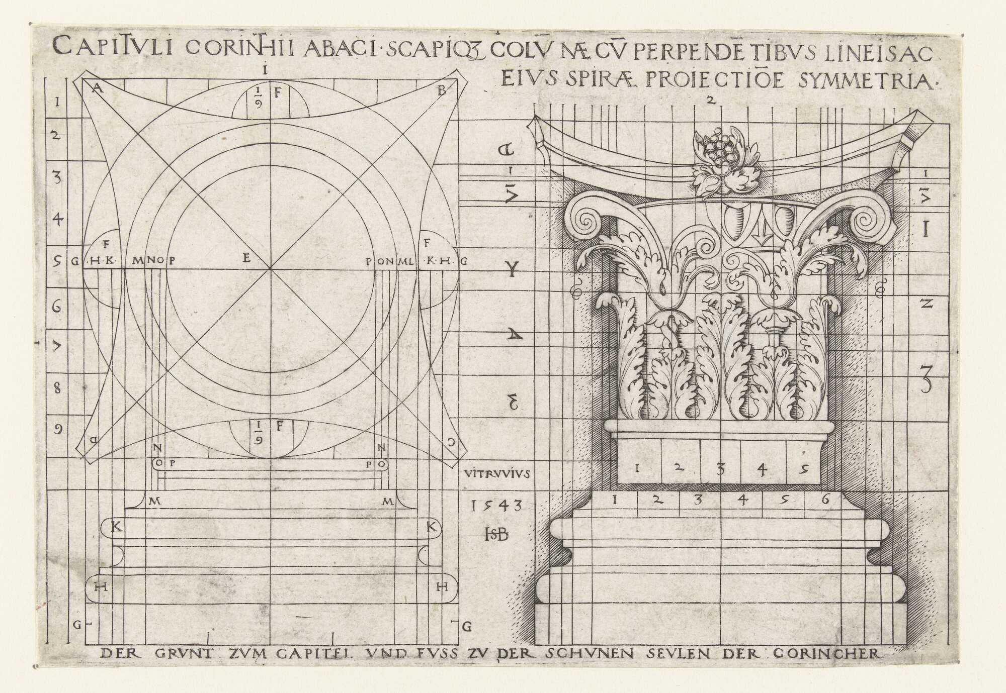 Sheets with the mapping, capital and basement of a Corinthian column after Vitruvius. Public domain
