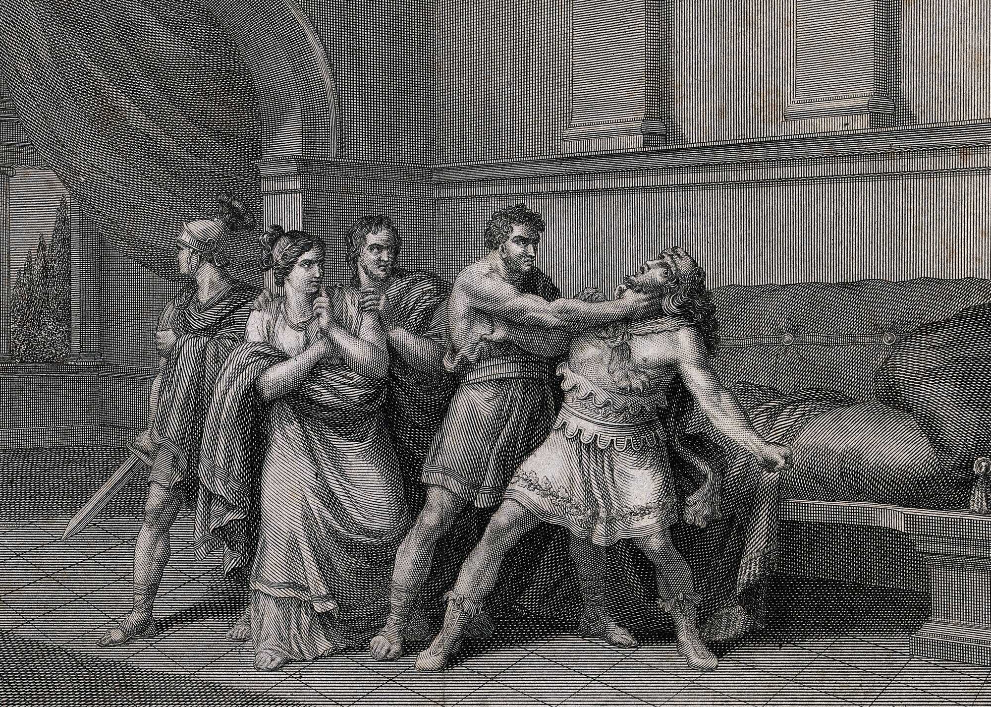 Roman Athlete Narcissus strangling Emperor Commodus, engraving by G. Mochetti. Credits: Wellcome Images, CC BY 4.0