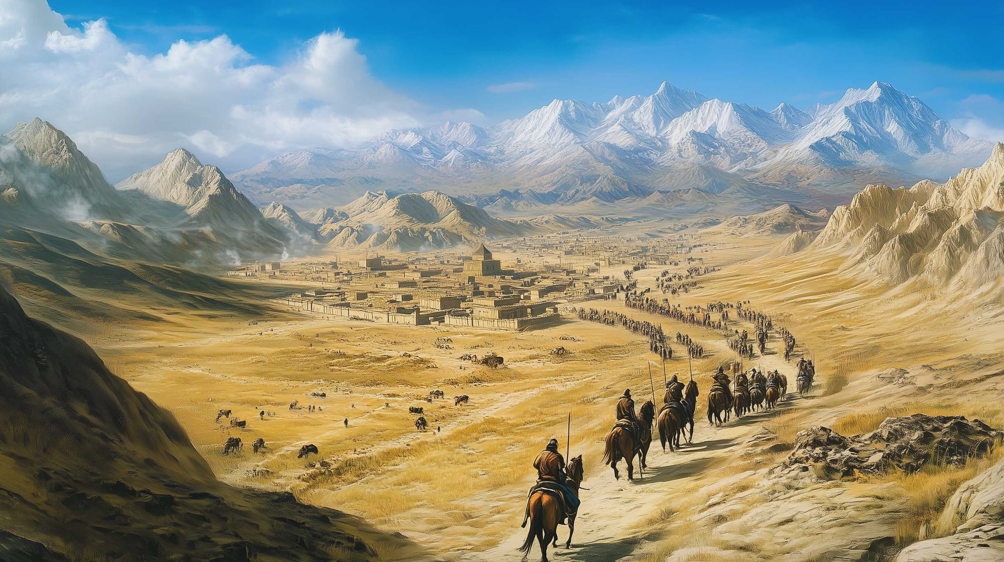Caravan routes through Asia connected the Roman Empire to China, passing through the Pamirs to China’s ancient capital, Singan-fu.
