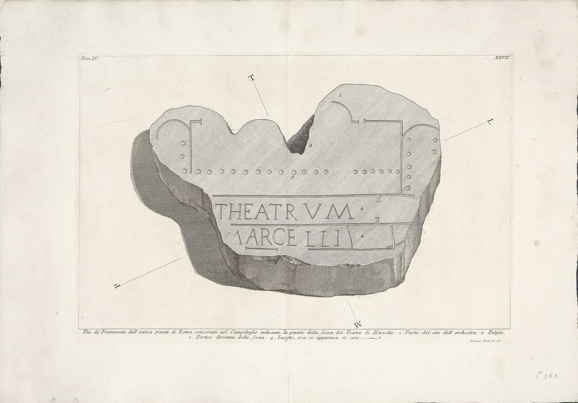 Marble fragment with map of Theatre of Marcellus in Rome, from the Severan Marble Map. Credits: Rijksmuseum, Public domain
